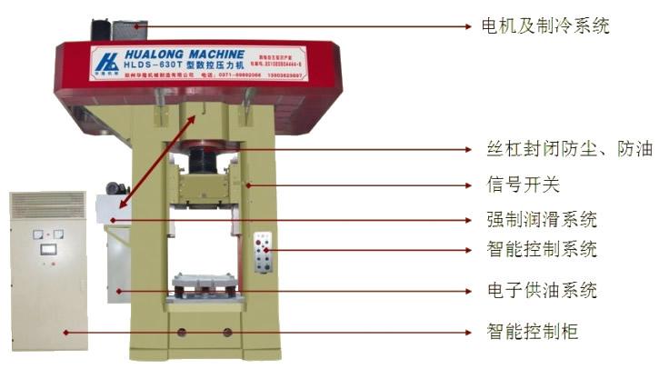 鄭州華隆機(jī)械制造有限公司的螺旋壓力機(jī)采用永磁同步伺服電機(jī)驅(qū)動(dòng)控制, 由框架、飛輪、螺桿螺母、滑塊、潤(rùn)滑機(jī)構(gòu)、制動(dòng)機(jī)構(gòu)等機(jī)械部分和伺服電機(jī)、電氣控制柜、操作按鈕站等電氣部分構(gòu)成。是摩擦壓力機(jī)的更新?lián)Q代產(chǎn)品。